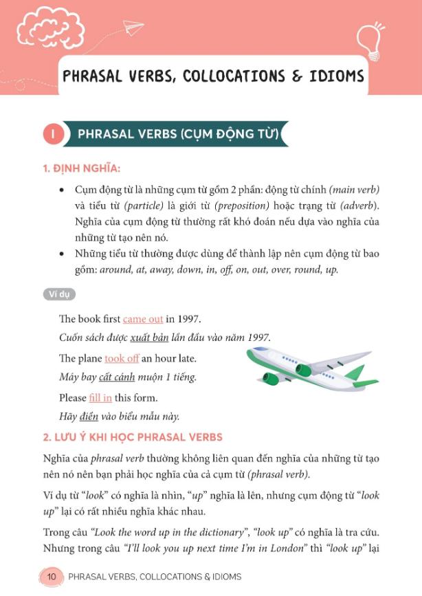Sách Mind Map English Phrasal Verbs, Collocations And Idioms PDF là một tài liệu học tiếng Anh chuyên sâu, tập trung vào ba mảng kiến thức notoriously khó đối với người học: cụm động từ (phrasal verbs), kết hợp từ (collocations) và thành ngữ (idioms). Đây đều là những yếu tố quyết định mức độ tự nhiên, linh hoạt và “giống người bản xứ” trong việc sử dụng tiếng Anh, nhưng lại thường bị bỏ qua hoặc học rời rạc trong quá trình học truyền thống.