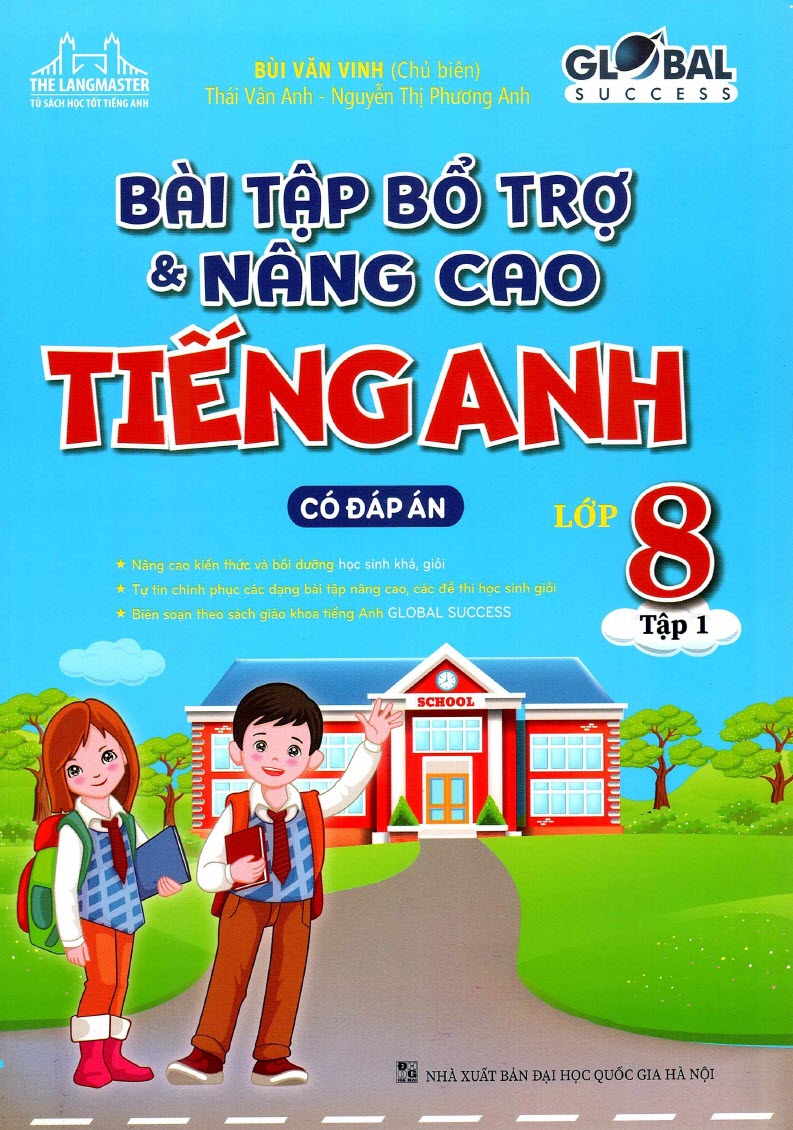 Sách Bài Tập Bổ Trợ Và Nâng Cao Tiếng Anh Lớp 8 Tập 1 – Global Success 8 là tài liệu luyện tập thiết yếu giúp học sinh củng cố kiến thức tiếng Anh trong giai đoạn đầu của lớp 8. Cuốn sách hỗ trợ phát triển đồng đều từ vựng, ngữ pháp và các kỹ năng ngôn ngữ. Đây là phần bổ trợ quan trọng trong chương trình Global Success.