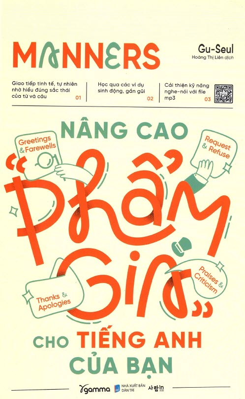 Sách Manners Nâng Cao Phẩm Giá Cho Tiếng Anh Của Bạn – Gu-Seul là tài liệu dành cho người học tiếng Anh muốn phát triển “phẩm giá ngôn ngữ” – tức khả năng sử dụng tiếng Anh không chỉ chính xác về ngữ pháp và từ vựng, mà còn phù hợp văn hóa, lịch sự và có sức thuyết phục trong giao tiếp quốc tế. Cuốn sách hướng tới việc rèn luyện thái độ ngôn ngữ cùng với kiến thức tiếng Anh, bởi giao tiếp hiệu quả vượt ra ngoài ngữ pháp.